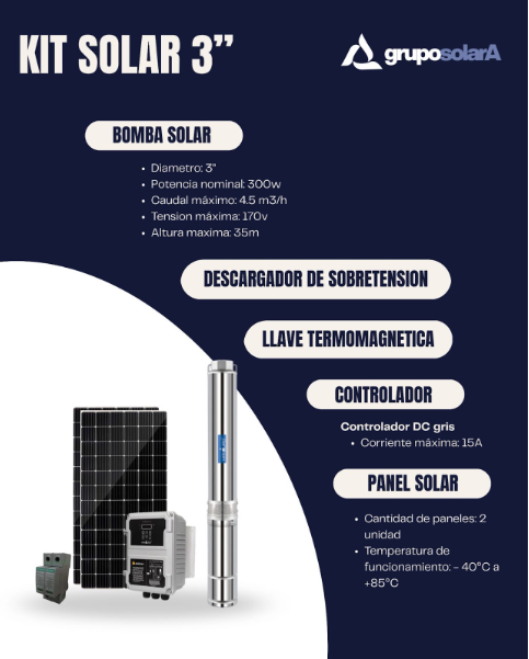 Kit bomba sumergible solar Handuro 300W. 3 pulg.