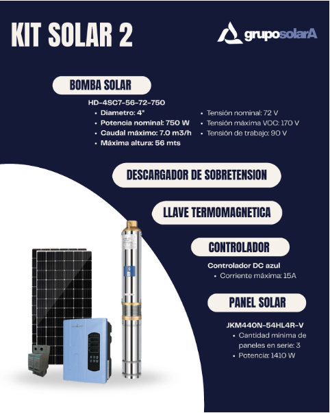 Kit bomba sumergible solar Handuro 750W. 4 pulg.