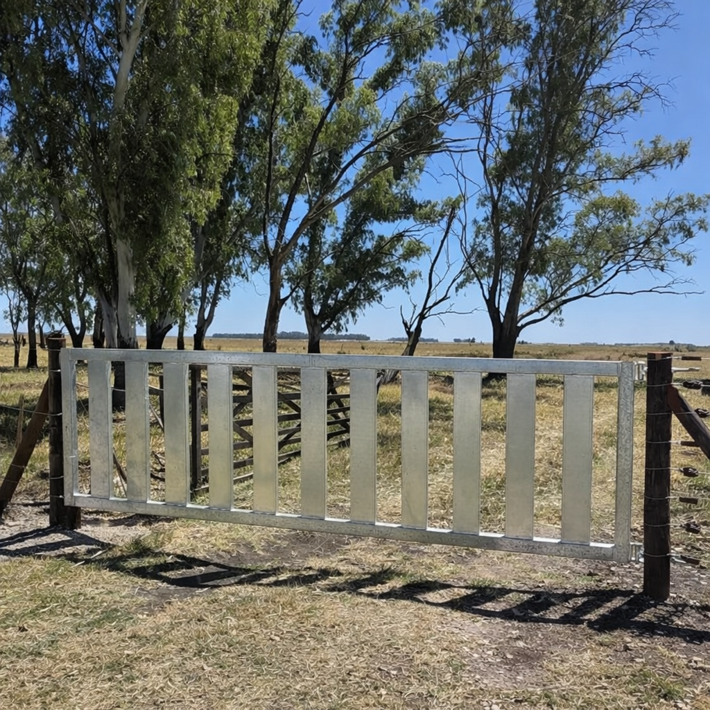 Tranqueras de chapa galvanizada de diferentes medidas para delimitar terrenos de forma segura y duradera. Marca Agrofertil. Resistente a la intemperie y fácil de instalar. Ideal para fincas, parcelas y establecimientos. Protege tus cultivos y ganado con calidad garantizada.