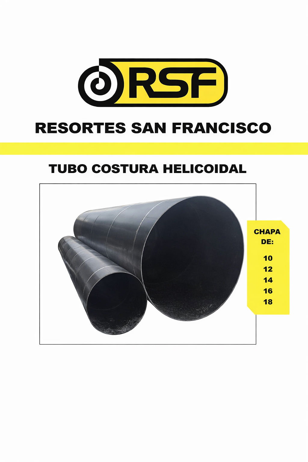 Tubos con costura Helicoidal – CHAPA DE: 10, 12, 14, 16, 18.